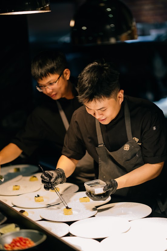 An open kitchen, private dining room, and garden view set the stage for Chef Vương’s modern take on Vietnamese grilled cuisine. Each menu marks a new chapter of creation — turning every event into a story shared at the table.